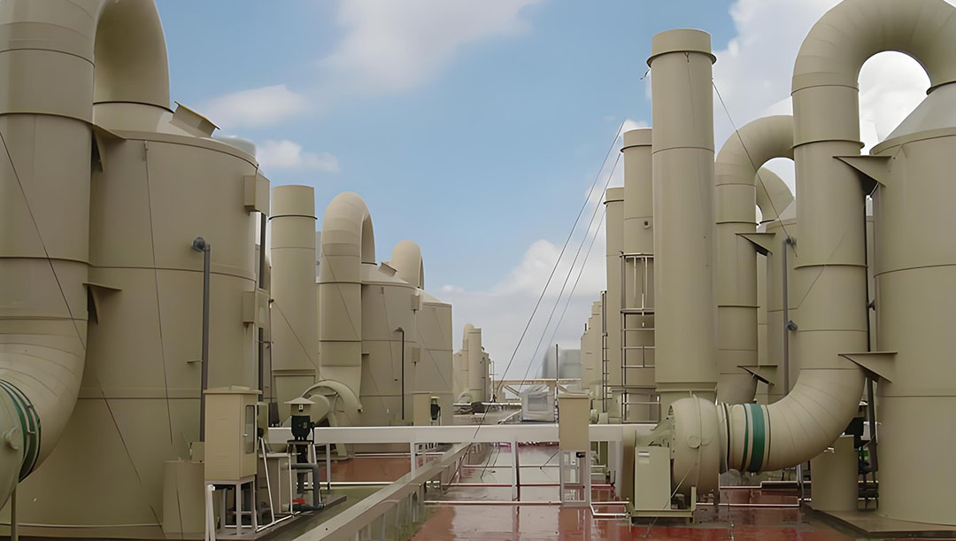 During the pharmaceutical production process a certain pharmaceutical company generates some acidic gases and waste gases which have certain impacts on human health and the environment Therefore it is very necessary to use acid mist scrubbers and FRP anti-corrosion fans for the treatment of waste gas The use of acid mist scrubbers can effectively remove pollutants and odorous substances from waste gas ensuring that the quality of waste gas emissions meets national environmental protection standards The use of tower fiberglass reinforced plastic anti-corrosion fans to convey waste gas can ensure that the internal components of the fan will not be corroded by acidic gases during the conveying process thereby extending the service life and stability of the fan